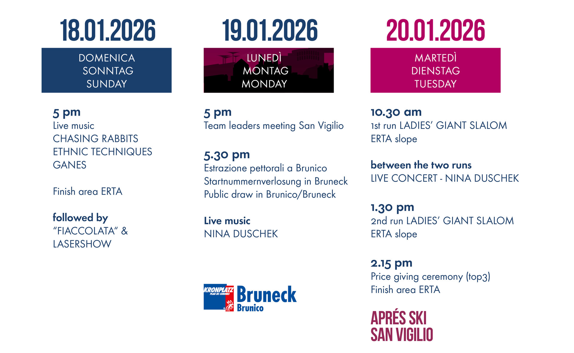 17.30 Uhr - Startnummernverlosung in Bruneck mit Live-Musik Nina Duschek